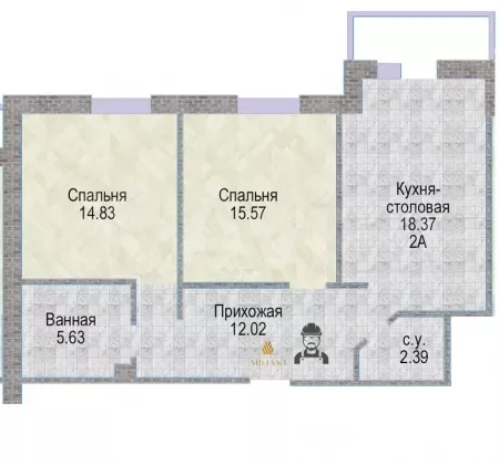 В избранное 2-к. квартира, 69,8 м², 3/9 эт.